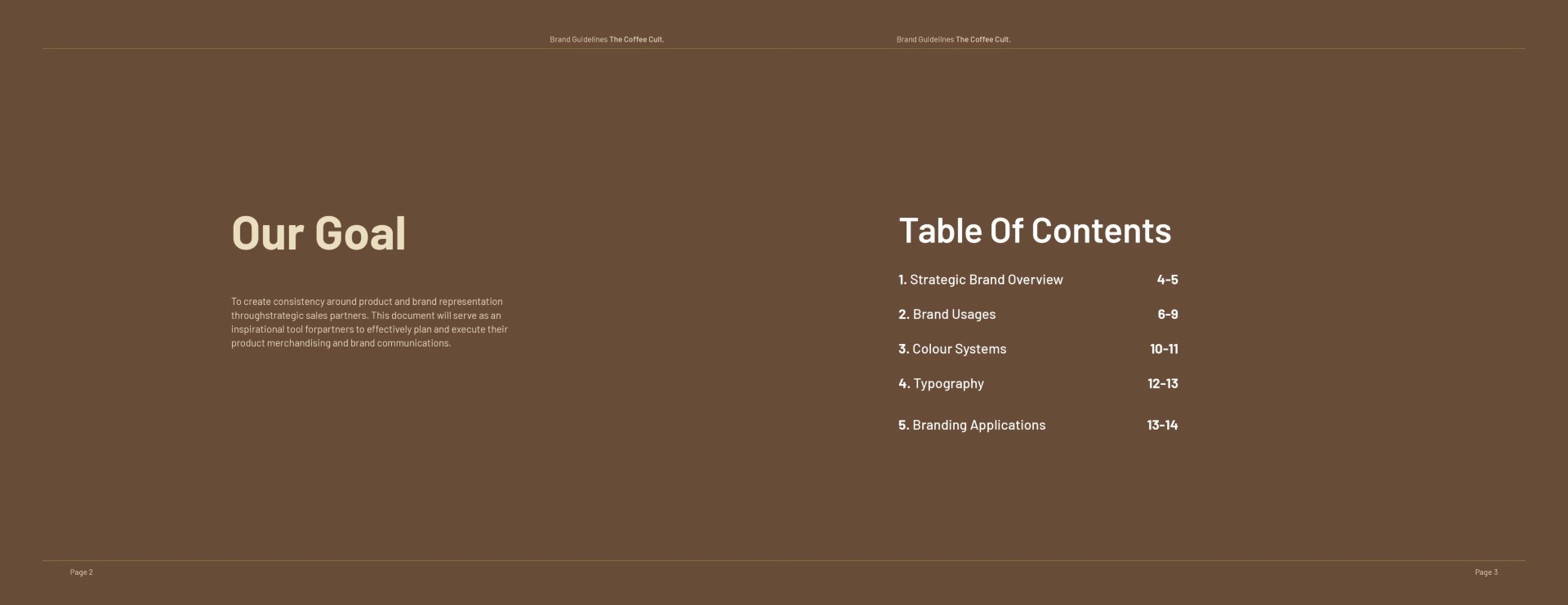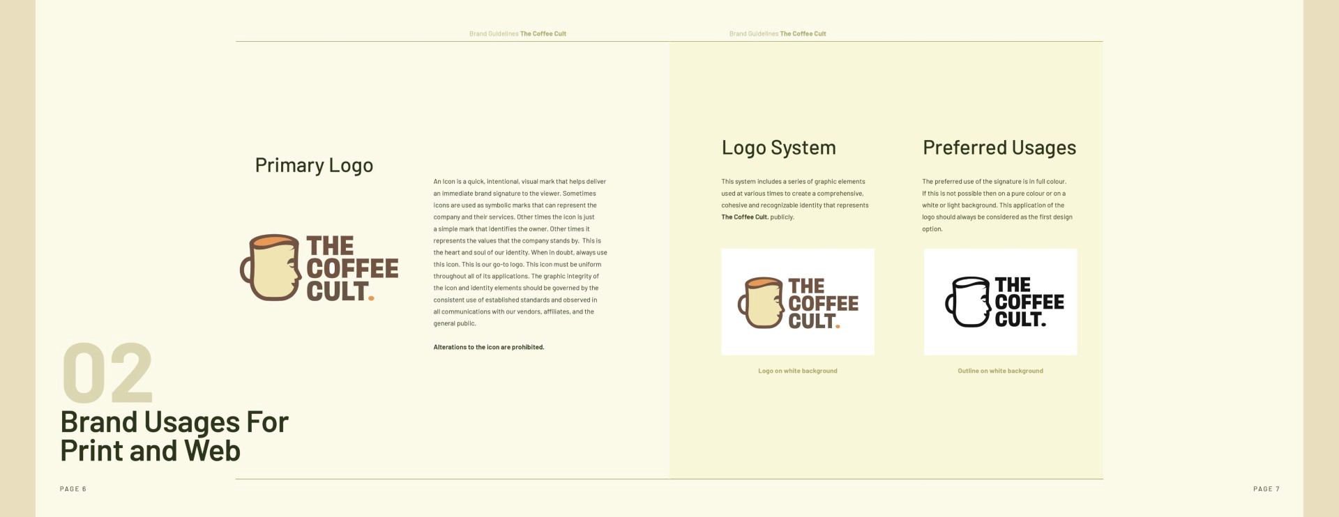 This project is a comprehensive brand guideline for The Coffee Cult, a specialty coffee brand focused on creating exceptional coffee experiences. The guidelines encompass the brand's vision, identity, and logo design process, reflecting its core values of community, intentionality, and a welcoming atmosphere. Through thoughtful design and strategy, this document serves as a roadmap for building a strong, consistent visual identity that celebrates the art and culture of coffee.