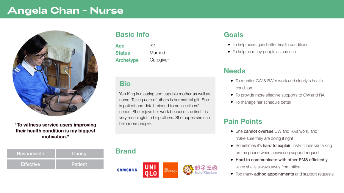 I conducted interviews with 10 employees, followed and observed their daily work and visit to seniors' home, analyzed their work documents and current CMS system.